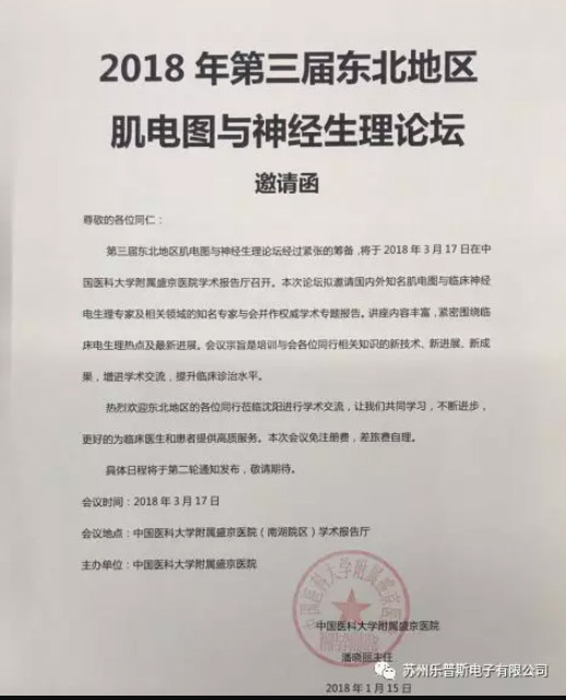 The third Northeast Forum on EMG and Neurophysiology will be held on March 17, 2018 at the Academic Presentation Hall of Shengjing Hospital Affiliated to China Medical University.