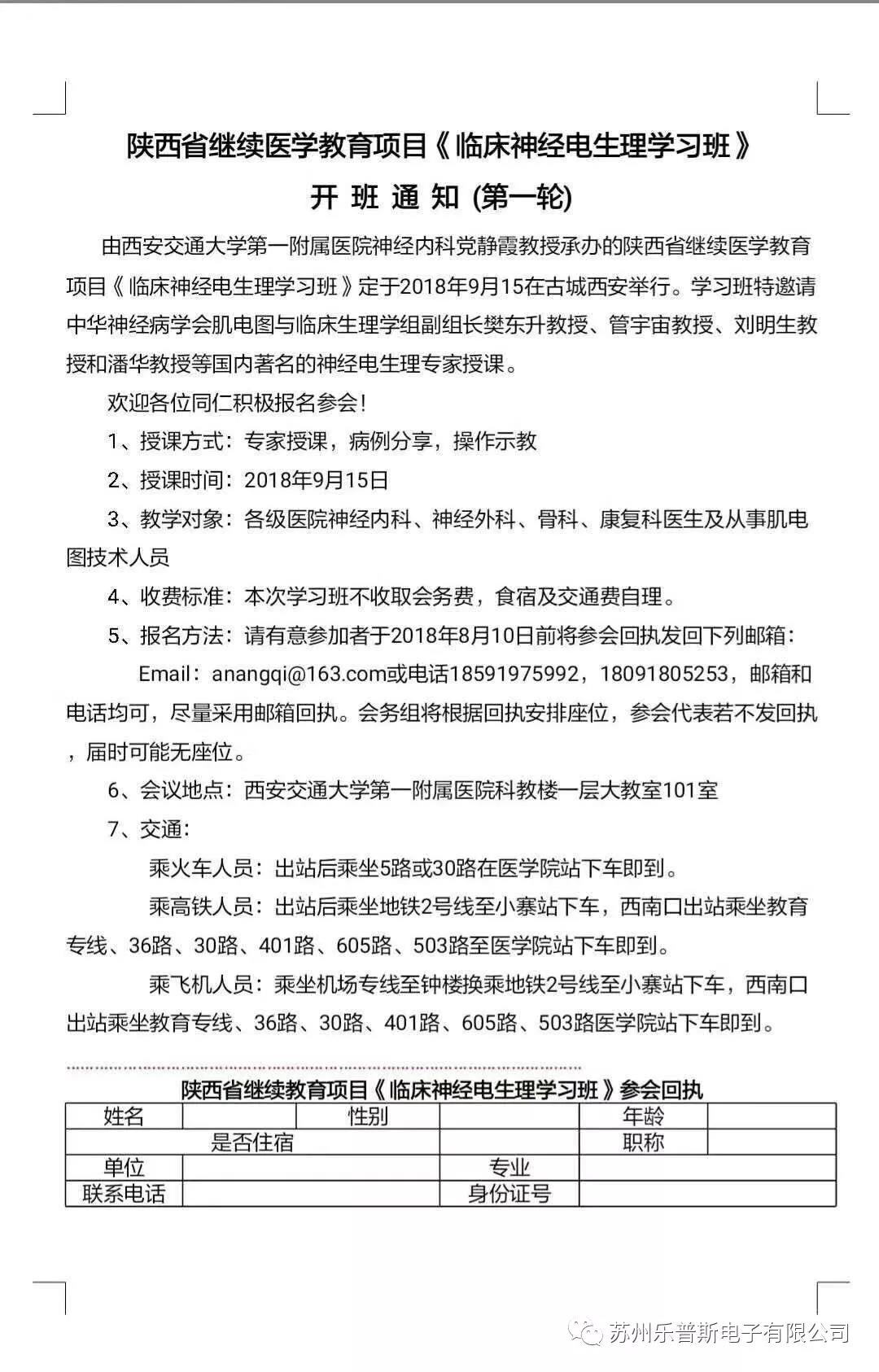 Notice of Class Opening of Shaanxi Continuing Medical Education Project "Clinical Neuroelectrophysiology Class"
